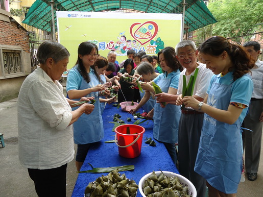 在活動現(xiàn)場,義工隊(duì)員們與社區(qū)工作人員一起,邊包愛心粽,邊與圍繞在周圍的社區(qū)老人們拉家?!,F(xiàn)場笑聲不斷、其樂融融,充滿溫情暖意?;顒又?,所用的包粽食材均采用低碳健康食材,旨在宣揚(yáng)傳統(tǒng)裹粽文化的同時,積極推廣低碳的生活理念。300余只粽子在大家的努力下,兩個小時就全部包裹完畢。義工隊(duì)員們挨個將現(xiàn)場包好的愛心粽以及帶來的綠豆糕、鴨蛋等節(jié)日禮品贈與社區(qū)孤寡老人、獨(dú)居長者等有需要的社區(qū)弱勢群體手上,為他們送去安慶港華燃?xì)獾馁N心和關(guān)愛,送去節(jié)日的慰問和濃濃祝福。