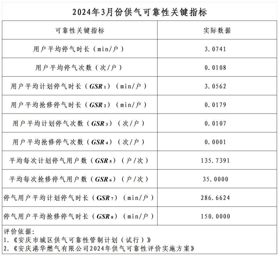 2024年3月供氣可靠性關(guān)鍵指標(biāo)