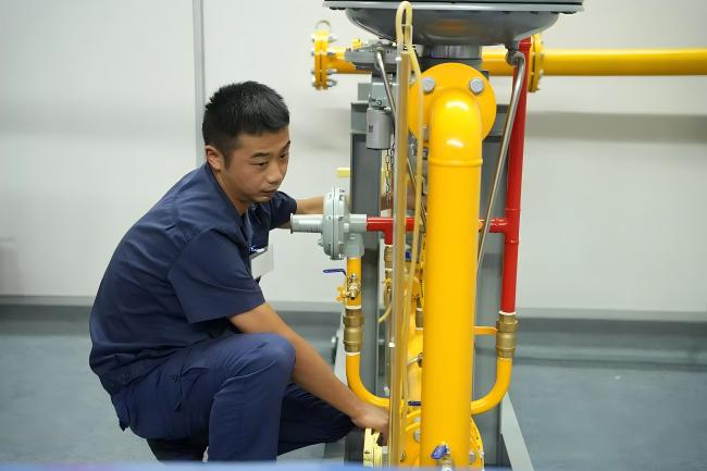本次競賽分為理論考試和實操競賽兩大部分,內(nèi)容涵蓋技術方案編制、蒙眼拆裝、工藝系統(tǒng)檢查及故障排除等多項考核內(nèi)容。理論考試主要檢驗參賽選手對燃氣管道調(diào)壓相關知識的掌握情況,而實操競賽則通過模擬真實工作環(huán)境,全面考察選手的實際操作能力和應對突發(fā)情況的能力。在實操競賽中,選手們需要在規(guī)定時間內(nèi)完成蒙眼拆裝切斷閥、排查調(diào)壓器故障并恢復管道壓力等任務,整個過程需準確無誤的完成144個零件的拆裝,并一次性調(diào)試合格。比賽現(xiàn)場氣氛緊張而熱烈,選手們?nèi)褙炞?、爭分奪秒,展現(xiàn)了燃氣行業(yè)職工良好的職業(yè)素養(yǎng)和團隊協(xié)作精神。