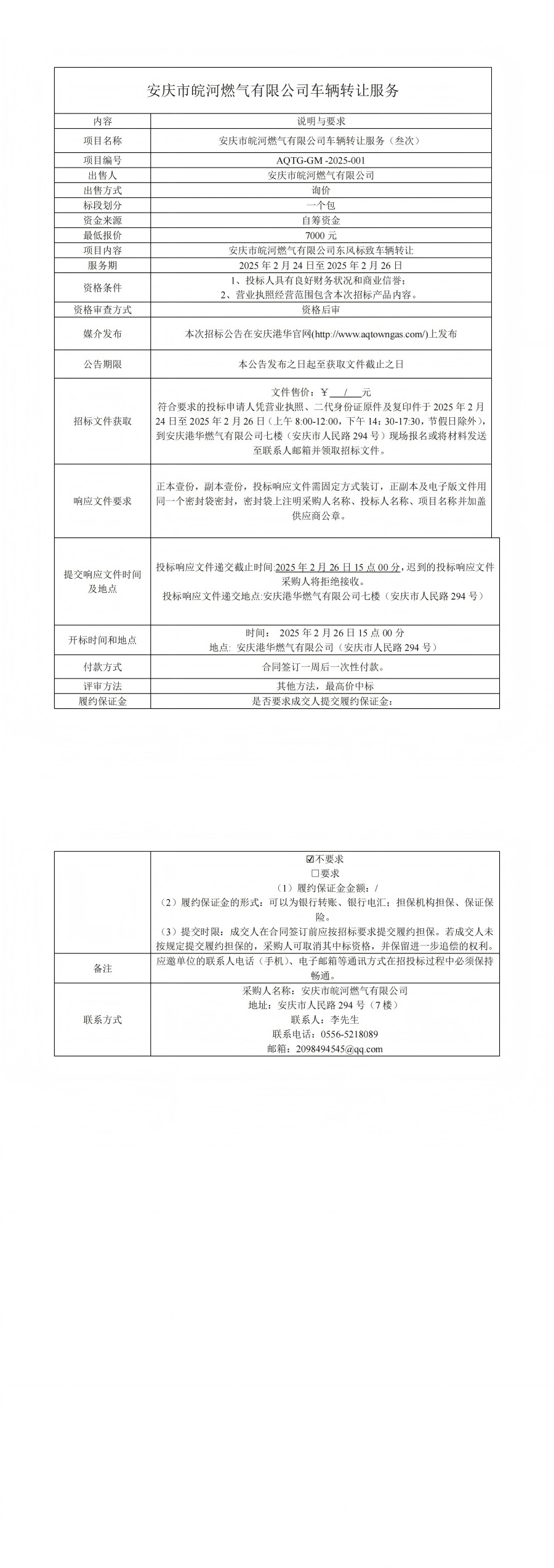 安慶市皖河燃氣有限公司車輛轉讓服務