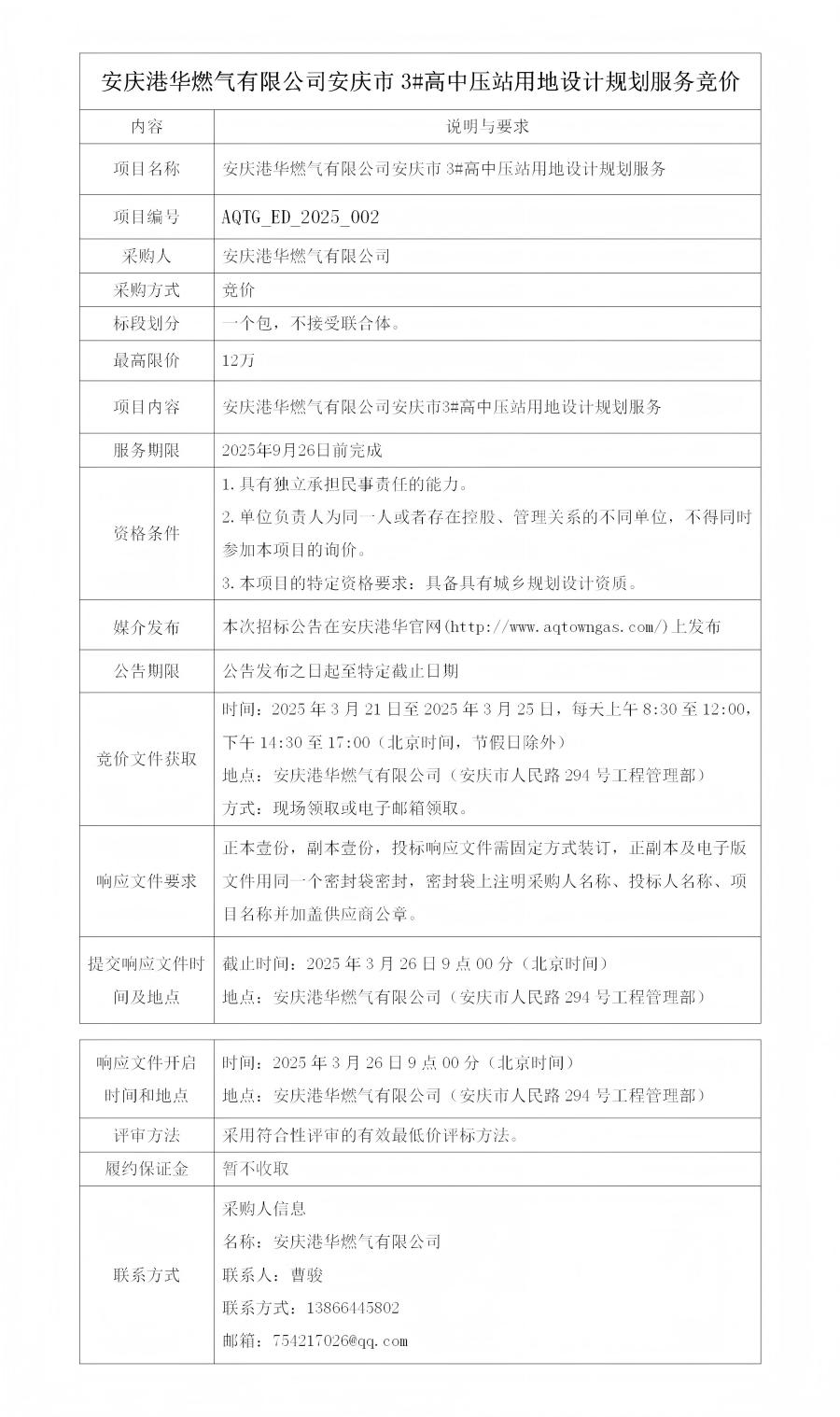 安慶港華燃氣有限公司安慶市3#高中壓站用地設(shè)計規(guī)劃服務(wù)競價