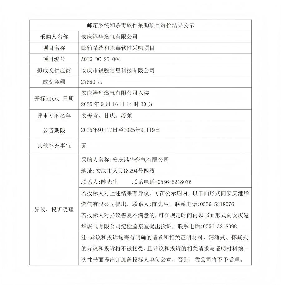 郵箱系統(tǒng)和殺毒軟件采購項目詢價結(jié)果公示